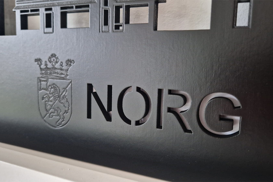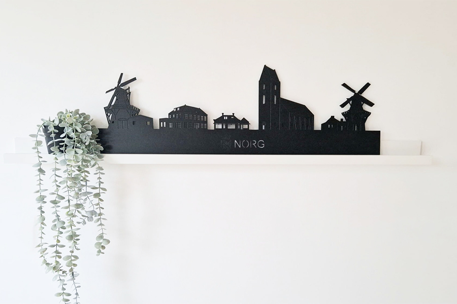 De skyline bestaat onder andere uit de iconen: Korenmolen “de Hoop”, Pelinckshuis, (Brink 14), Café Zwaneveld, de Sint-Margarethakerk en Korenmolen Noordenveld. In deze skyline is ook het voormalige gemeentewapen van Norg verwerkt — een mooi stukje lokale geschiedenis.