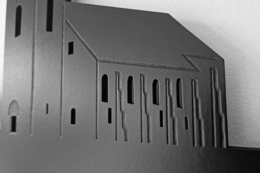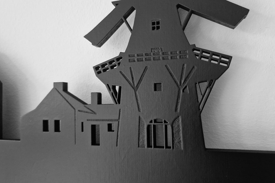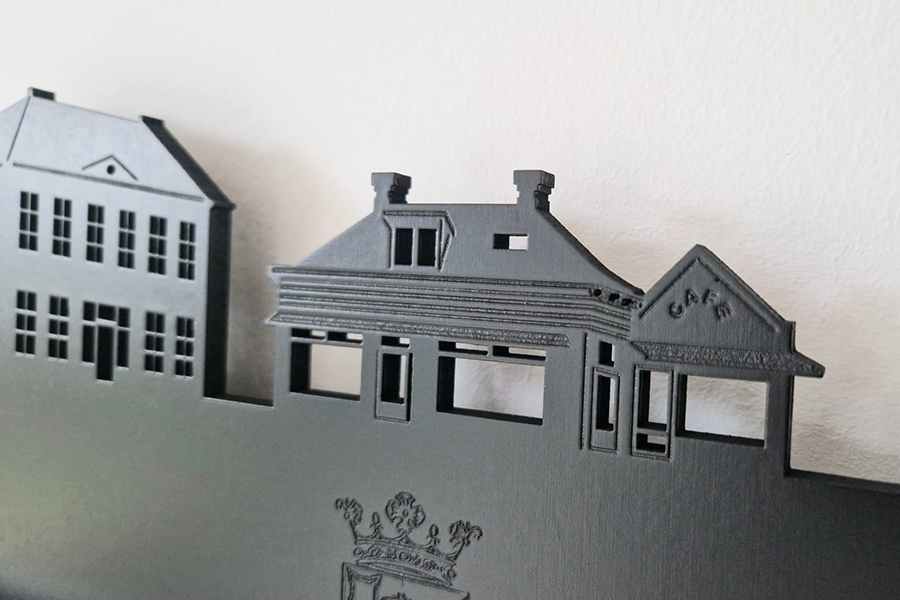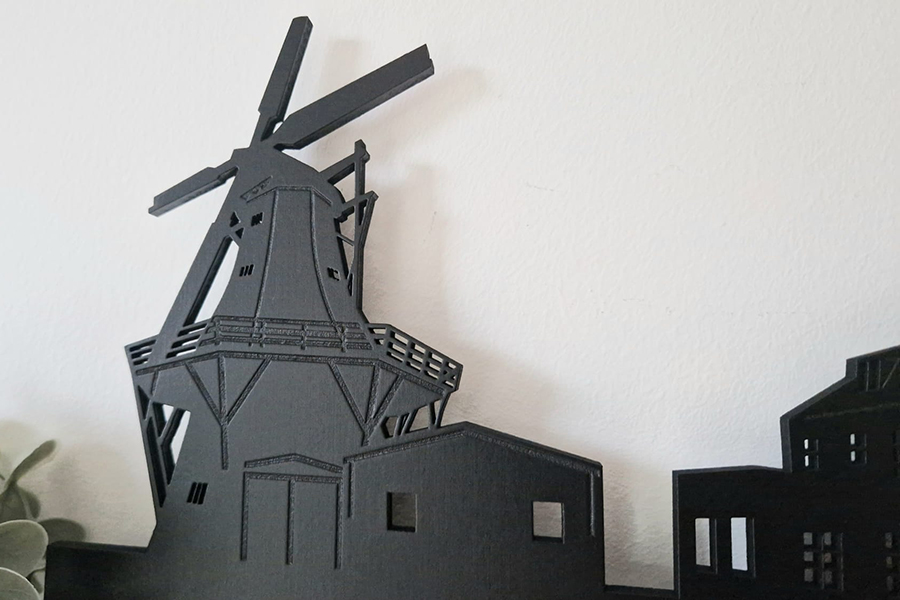 De skyline kan als eyecatcher een mooi plekje krijgen aan de muur. Bevestigingstip: plaats een waterpas onder de skyline, op een muur naar keuze en bevestig twee kopspijkertjes door één van de beschikbare stevige gaatjes (raampje, deurtje o.i.d.) links en rechts of gebruik dubbelzijdig tape.