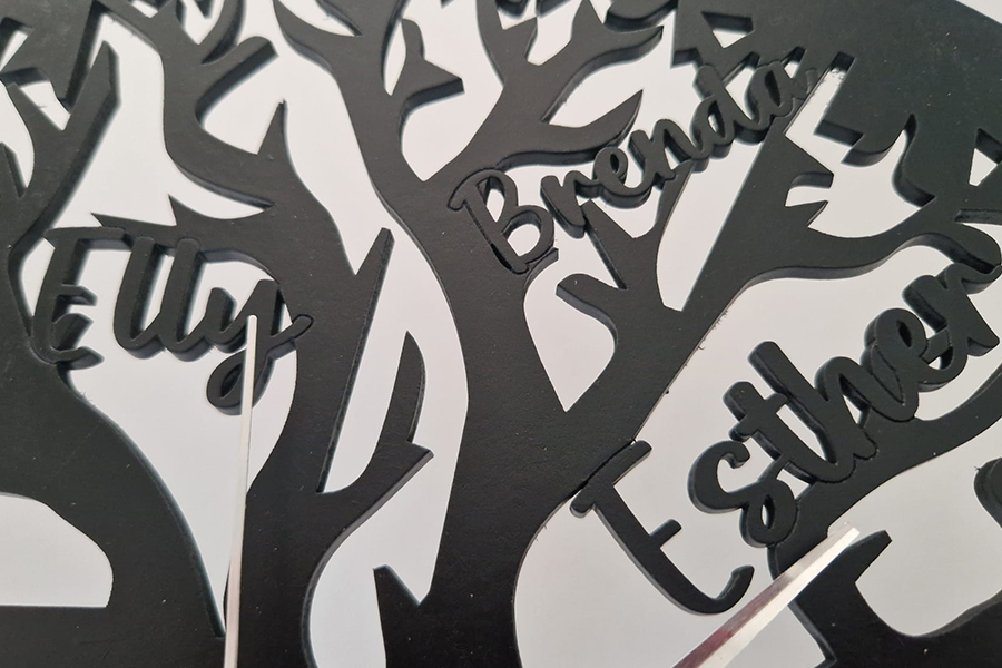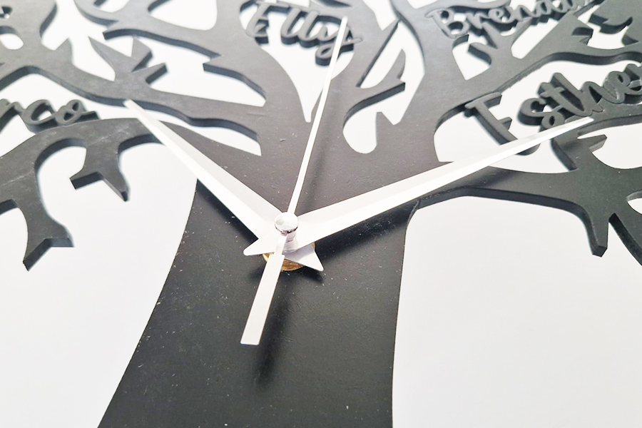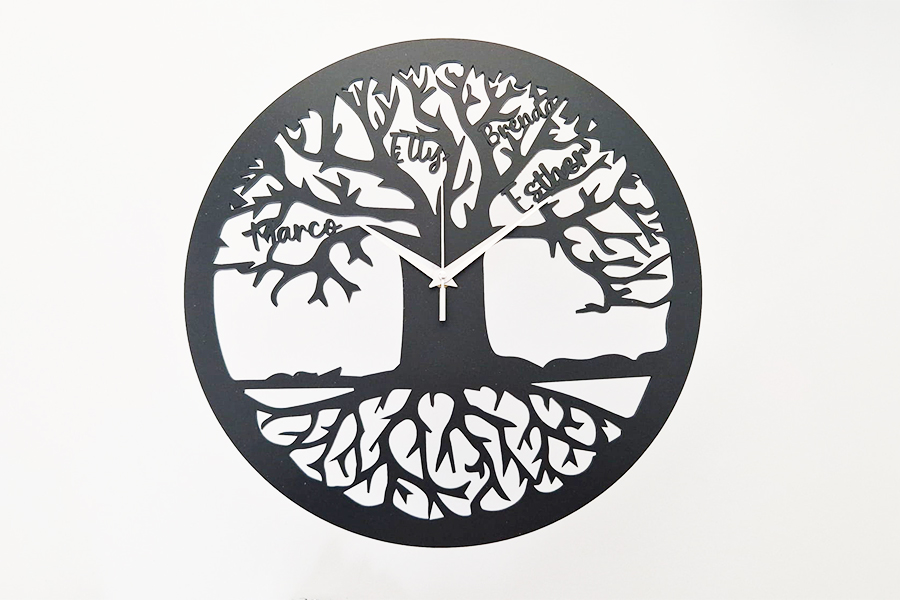 Deze houten klok wordt gepersonaliseerd met 1 tot 6 namen, die subtiel zijn verwerkt in de takken van de levensboom. Zo ontstaat een uniek en persoonlijk ontwerp dat jouw familieverhaal vertelt.